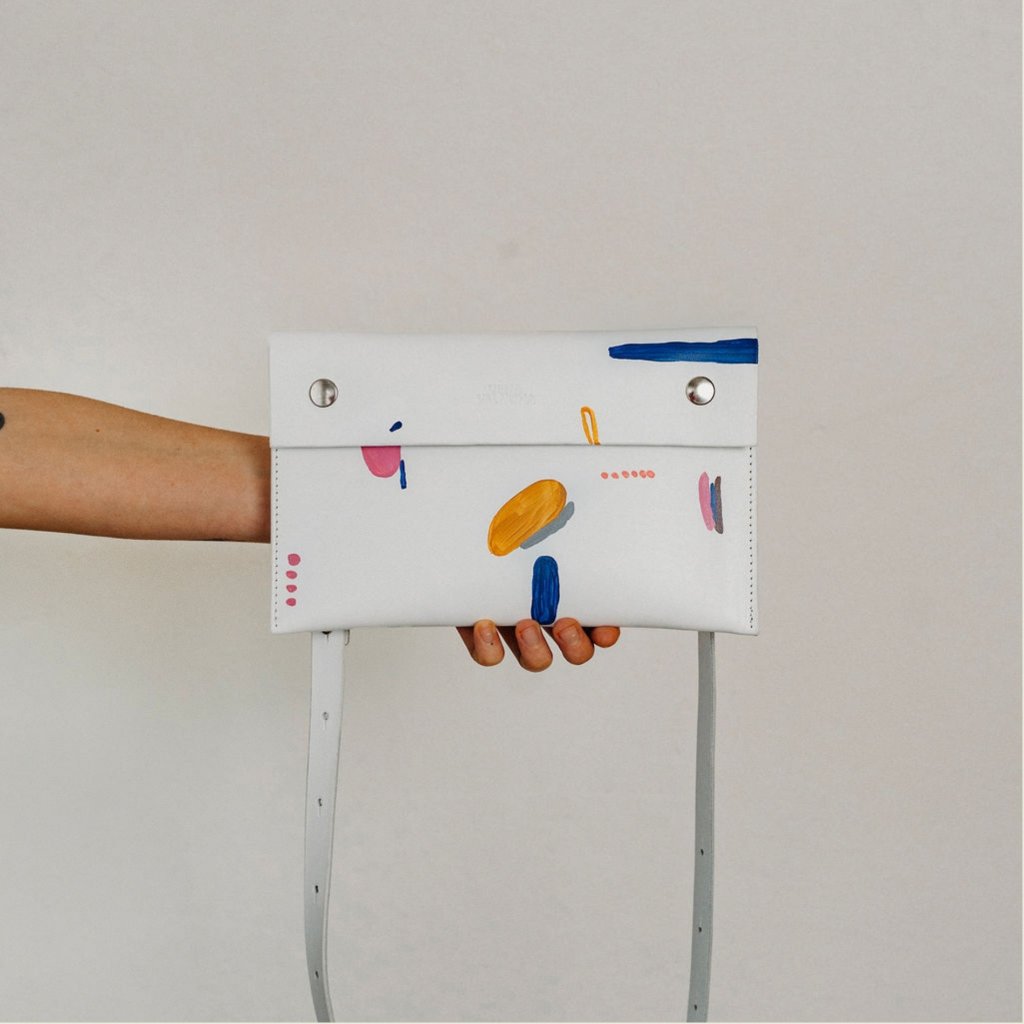 Limitovaná kabelka ze spolupráce s Danielou Klečackou vznikla z touhy propojit poctivé řemeslo s volnou malbou. Minimalistická kožená kabelka se stala plátnem pro autorský motiv Daniely. Každý kus je malý originál plný energie a radosti z barvy.