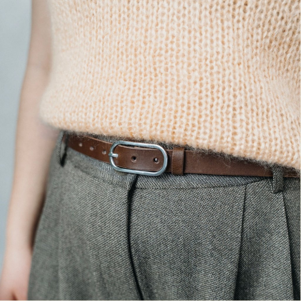 Jemný detail, který dokáže proměnit celý outfit. Úzký kožený pásek s čistou linií přirozeně zvýrazní pas, aniž by působil rušivě. Vynikne přes šaty, tuniky i delší sako, stejně dobře ale funguje i s kalhotami s vyšším pasem nebo volnějším svetrem.