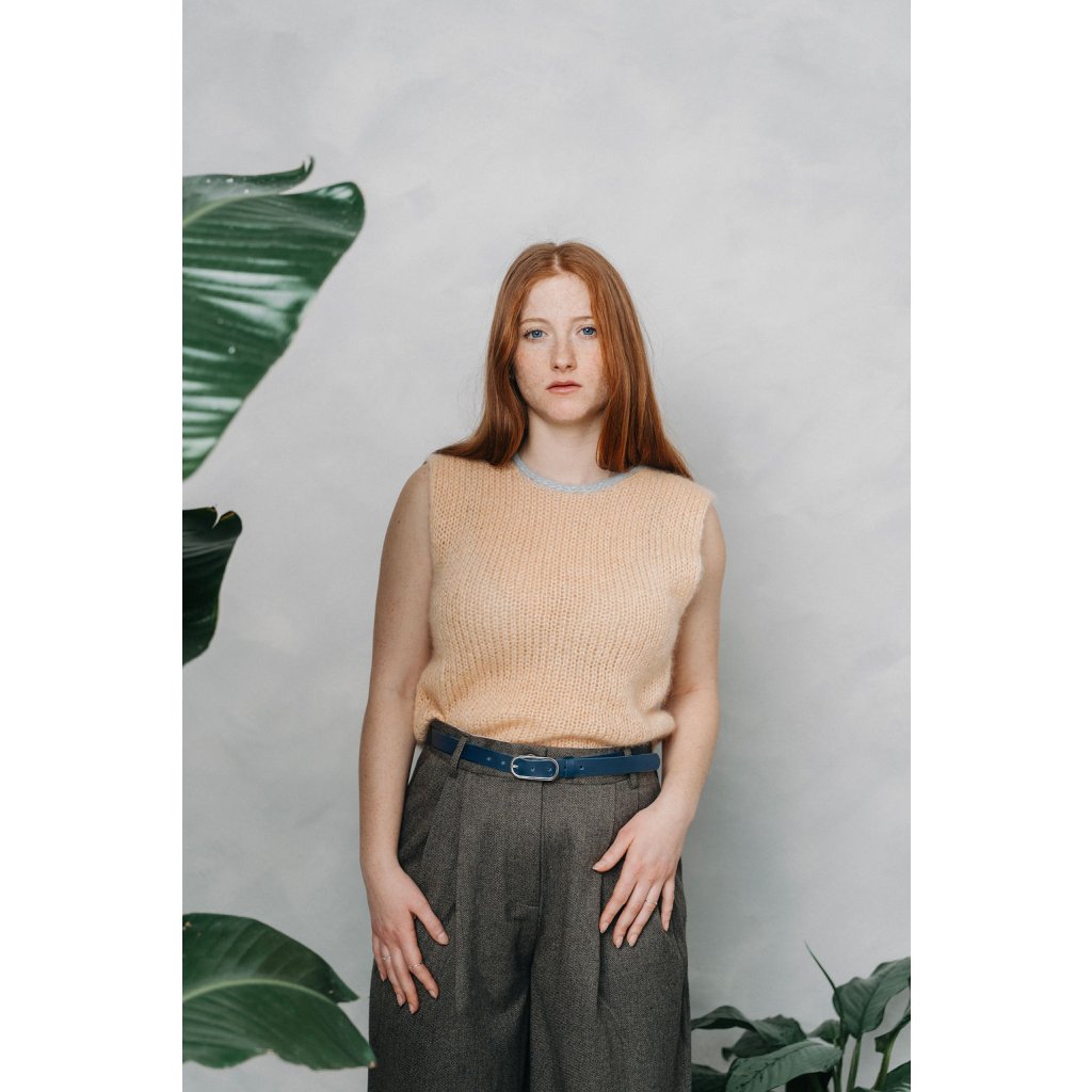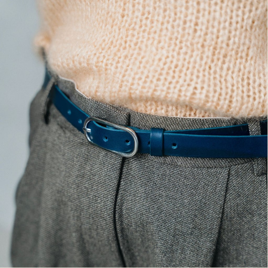 Jemný detail, který dokáže proměnit celý outfit. Úzký kožený pásek s čistou linií přirozeně zvýrazní pas, aniž by působil rušivě. Vynikne přes šaty, tuniky i delší sako, stejně dobře ale funguje i s kalhotami s vyšším pasem nebo volnějším svetrem.