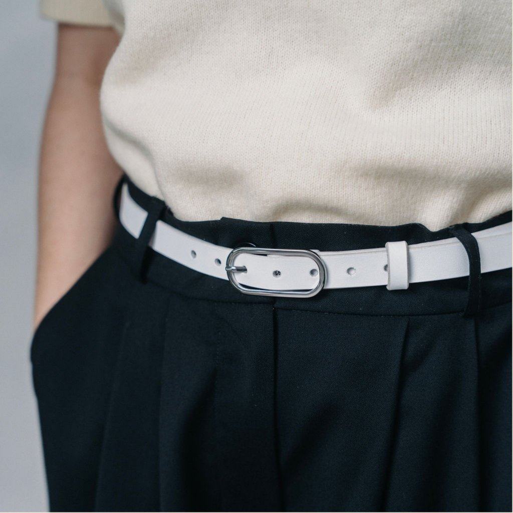 Jemný detail, který dokáže proměnit celý outfit. Úzký kožený pásek s čistou linií přirozeně zvýrazní pas, aniž by působil rušivě. Vynikne přes šaty, tuniky i delší sako, stejně dobře ale funguje i s kalhotami s vyšším pasem nebo volnějším svetrem.